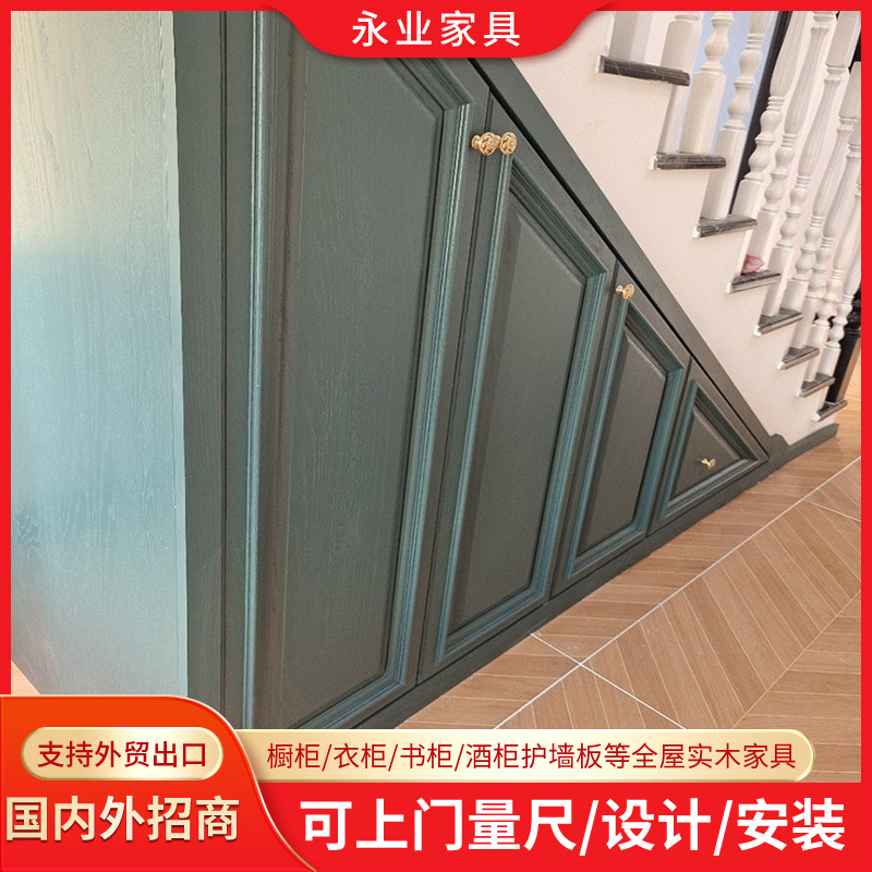 工厂销售鞋柜收纳红橡原木绿色楼梯柜个性设计异型储物柜平开门