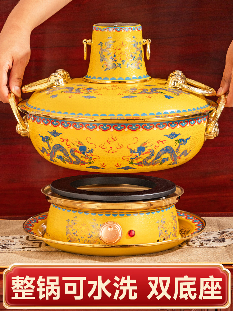 铜火锅珐琅彩插电碳两用涮羊肉纯紫铜鸳鸯锅加厚搪瓷木炭铜火锅具