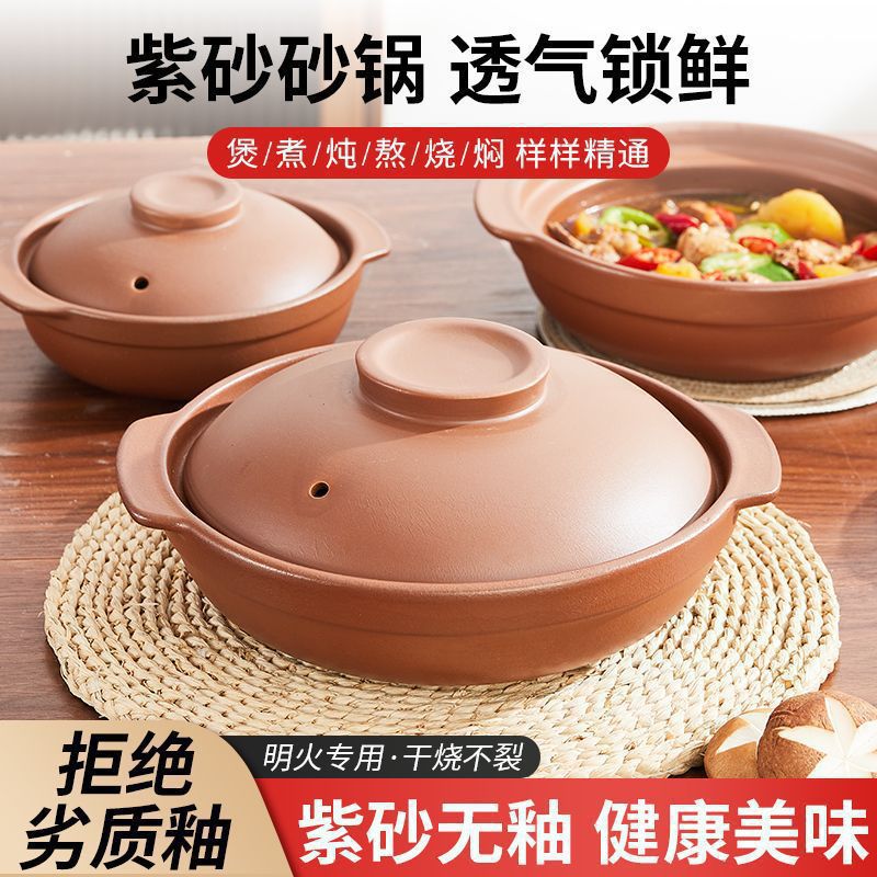 煲仔饭砂锅紫砂无涂层沙锅无釉煲汤锅石锅煮粥老式耐高温家用明火