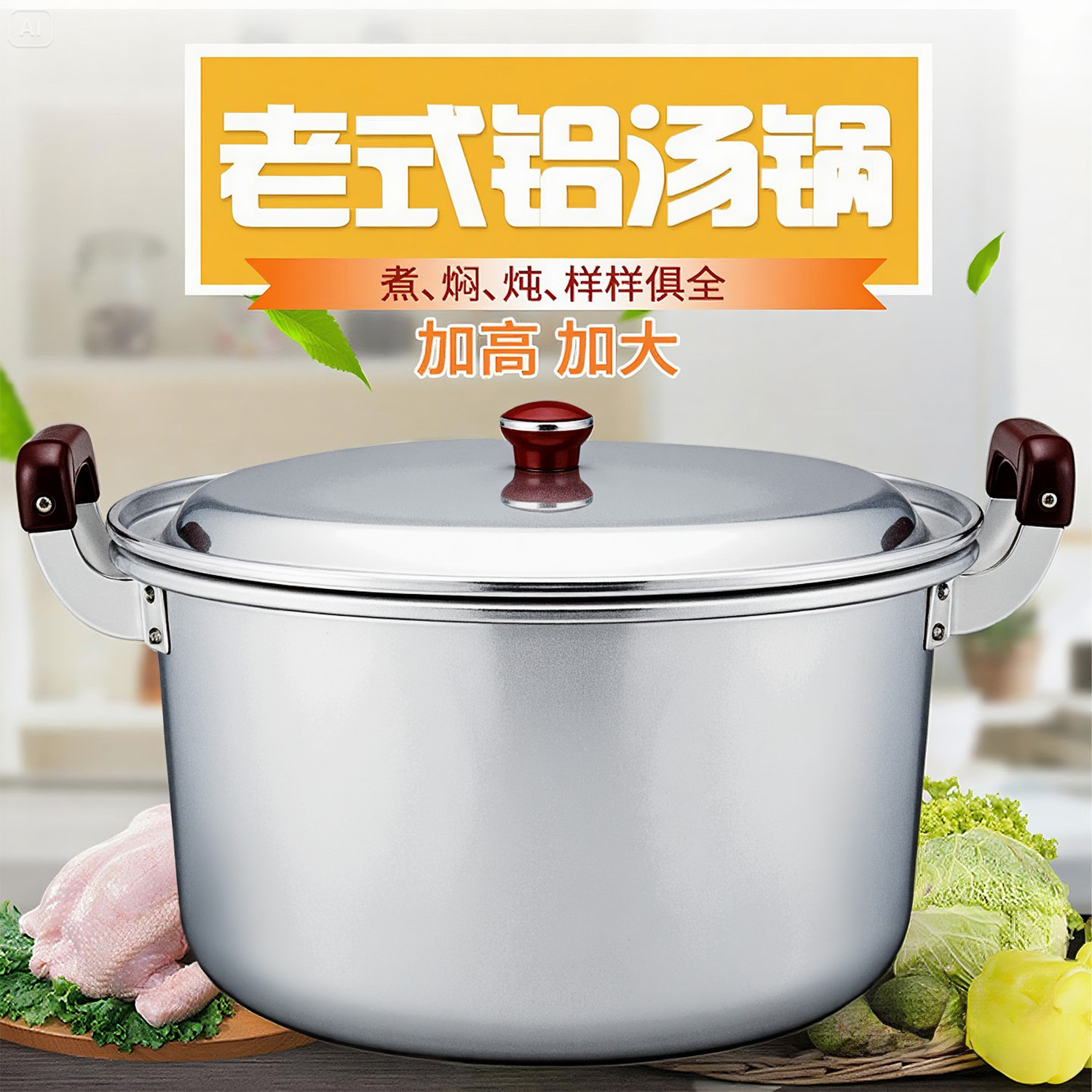 复古老式铝锅加厚铝合金双耳小汤锅家用燃气大容量烧水锅炖锅煮锅