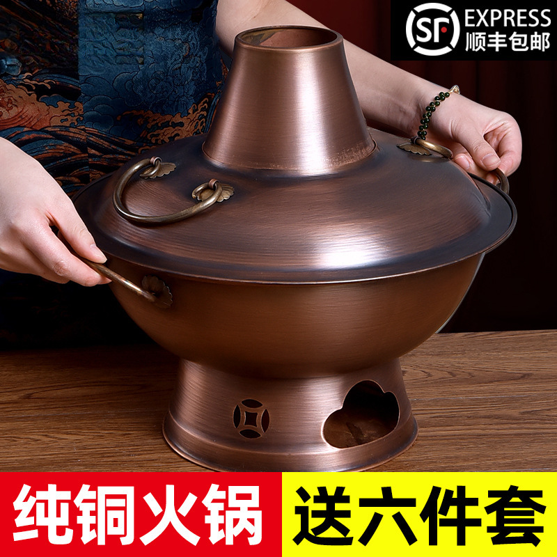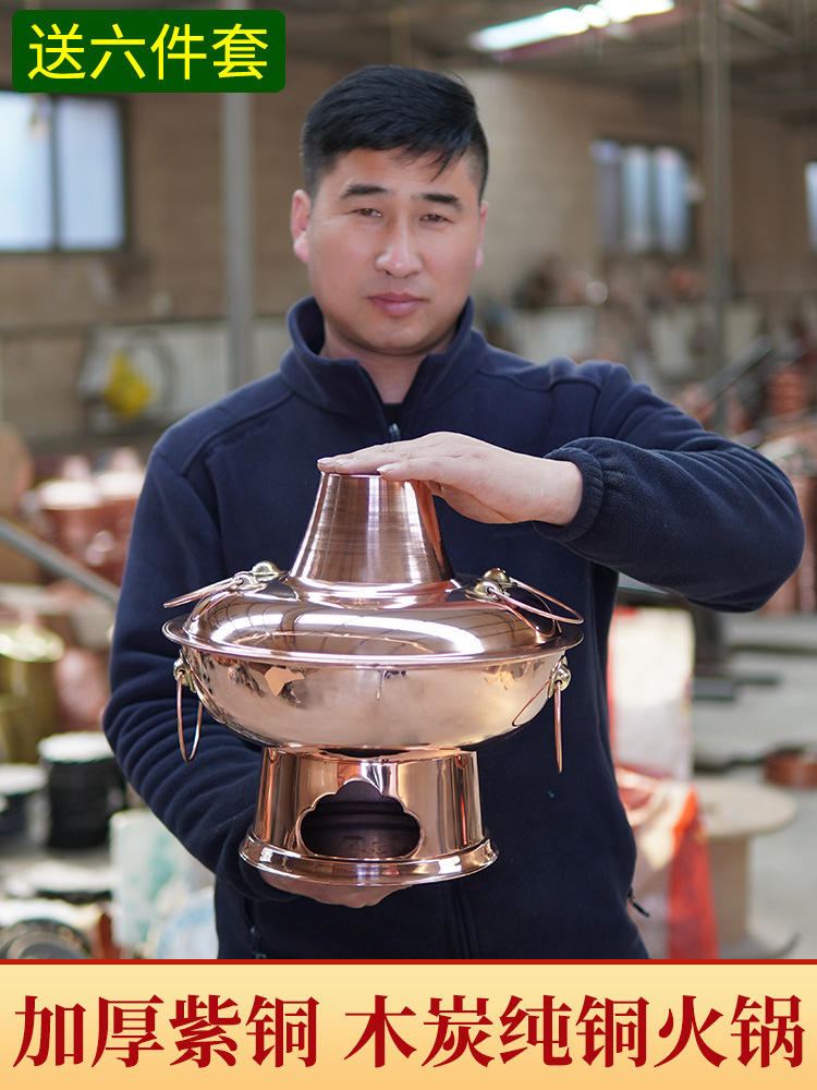 铜锅商用加厚纯铜老式鸳鸯锅家用烧木炭碳纯紫老北京涮羊肉铜火锅