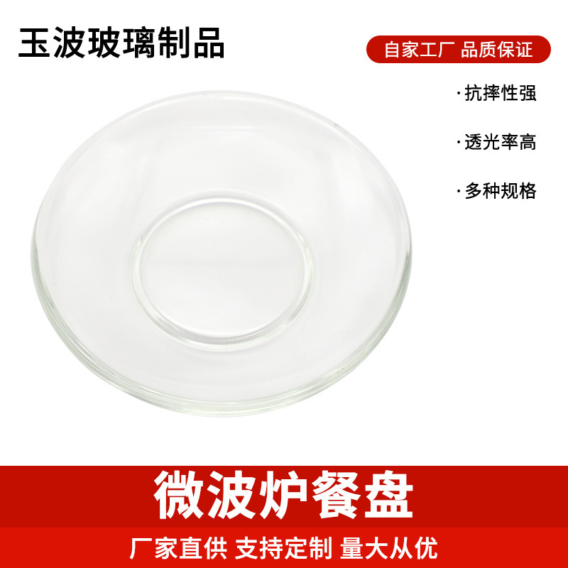 厂家直供微波炉玻璃盘耐热耐高温玻璃餐盘家用菜盘加厚透明玻璃