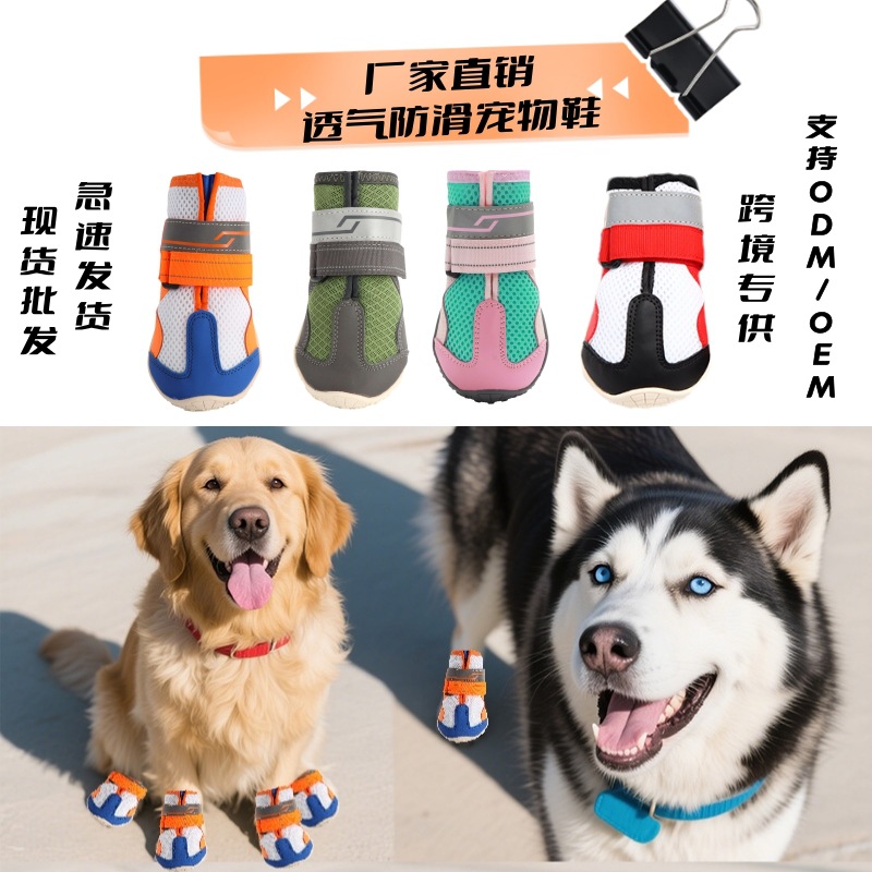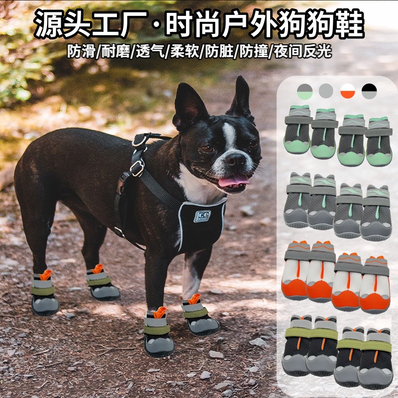 狗鞋厂家跨境专供宠物狗狗鞋四季网孔透气外出不掉脚宠物鞋子工厂
