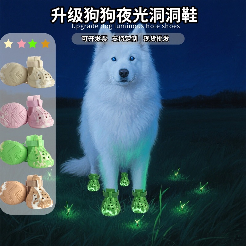 26年夜光洞洞鞋防滑轻便不掉脚宠物鞋子博美比熊边牧狗鞋跨境工厂