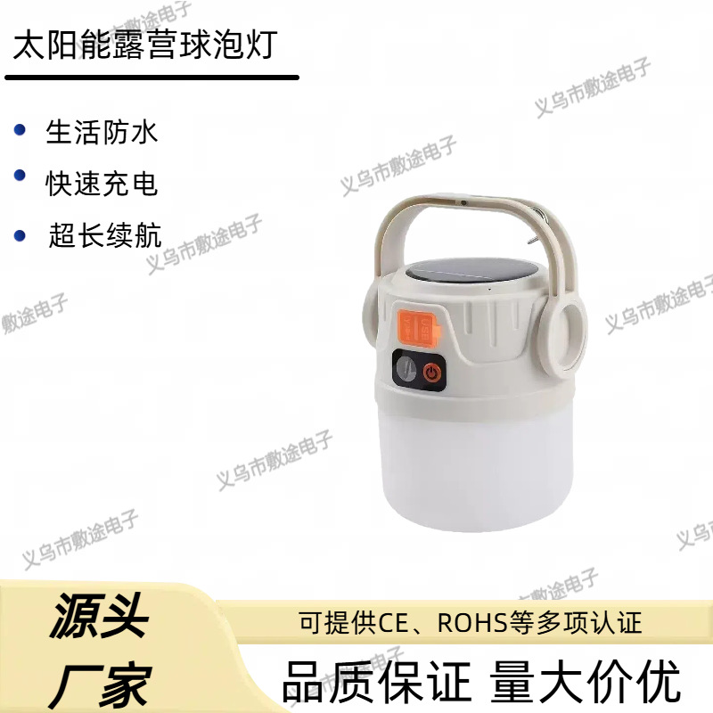 跨境太阳能露营球泡灯电量显示长续航高亮手提灯户外野营应急充电
