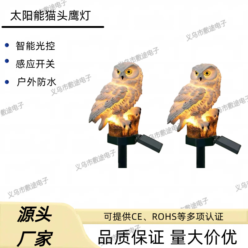 跨境太阳能猫头鹰灯庭院花园装饰灯仿真动物草坪地插灯