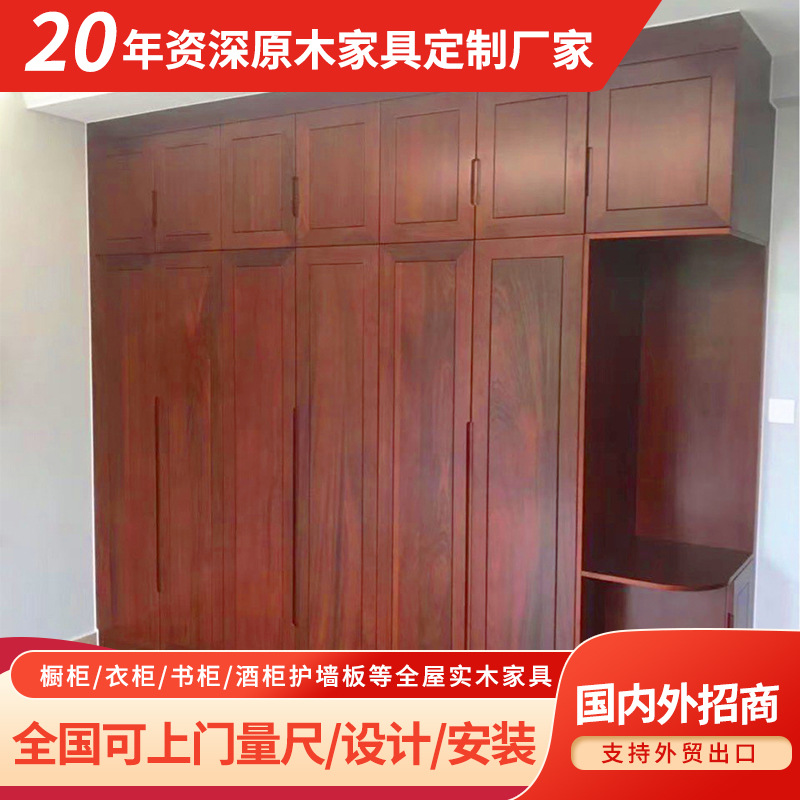 定 制原木成人防潮通顶衣柜沙比利卧室主卧开放型新中式整体衣柜