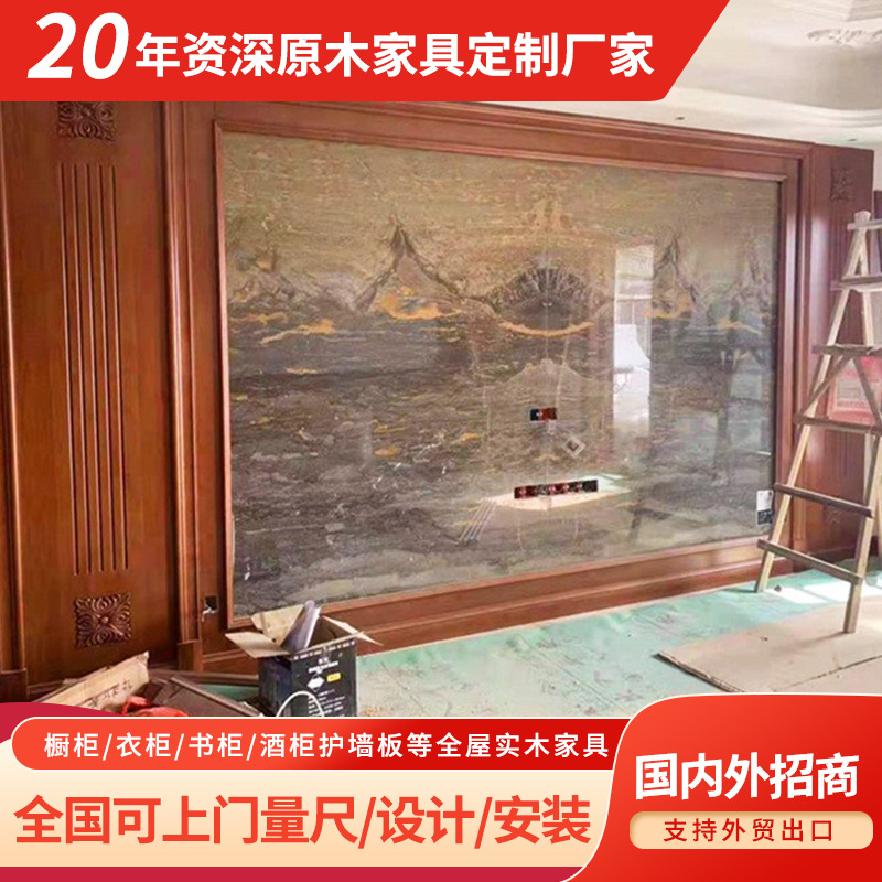 定制实木背景墙全屋原木家具生产中式护墙板线条储物柜子工厂销售