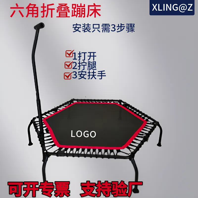 50英寸六角可折叠蹦床带扶手防噪静音家用健身房可用厂家直销