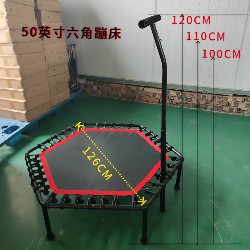 50英寸蹦床健身运动六角扶手室内家用跳跳床组合成人蹦极床批发