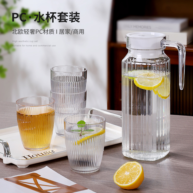 PC亚克力冷水壶家用耐高温条纹扎壶塑料大容量餐厅酒吧商用果汁壶