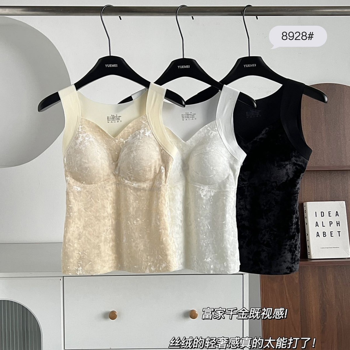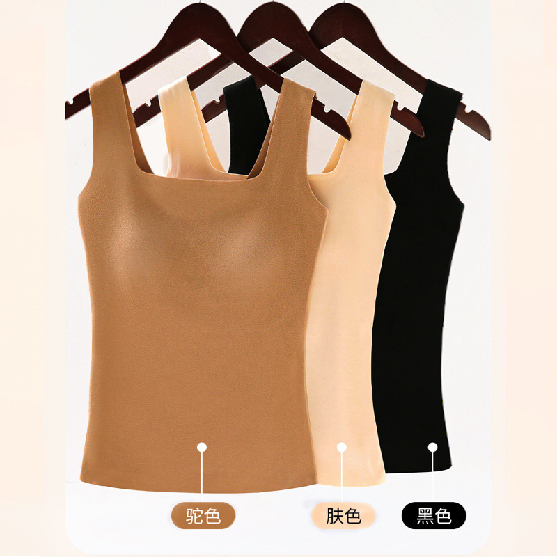 秋冬金丝绒宽肩保暖内衣免穿文胸固定杯无痕美背外穿内搭亲肤背心