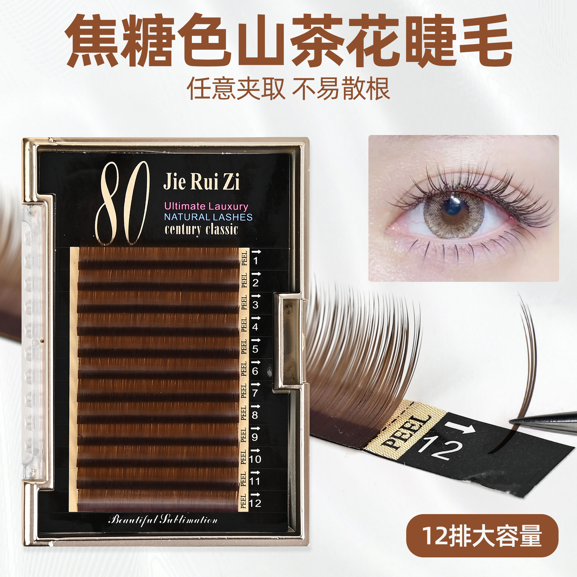 厂家批发0.07焦糖山茶花假睫毛 毛丝颜色逼真柔软自然外贸款
