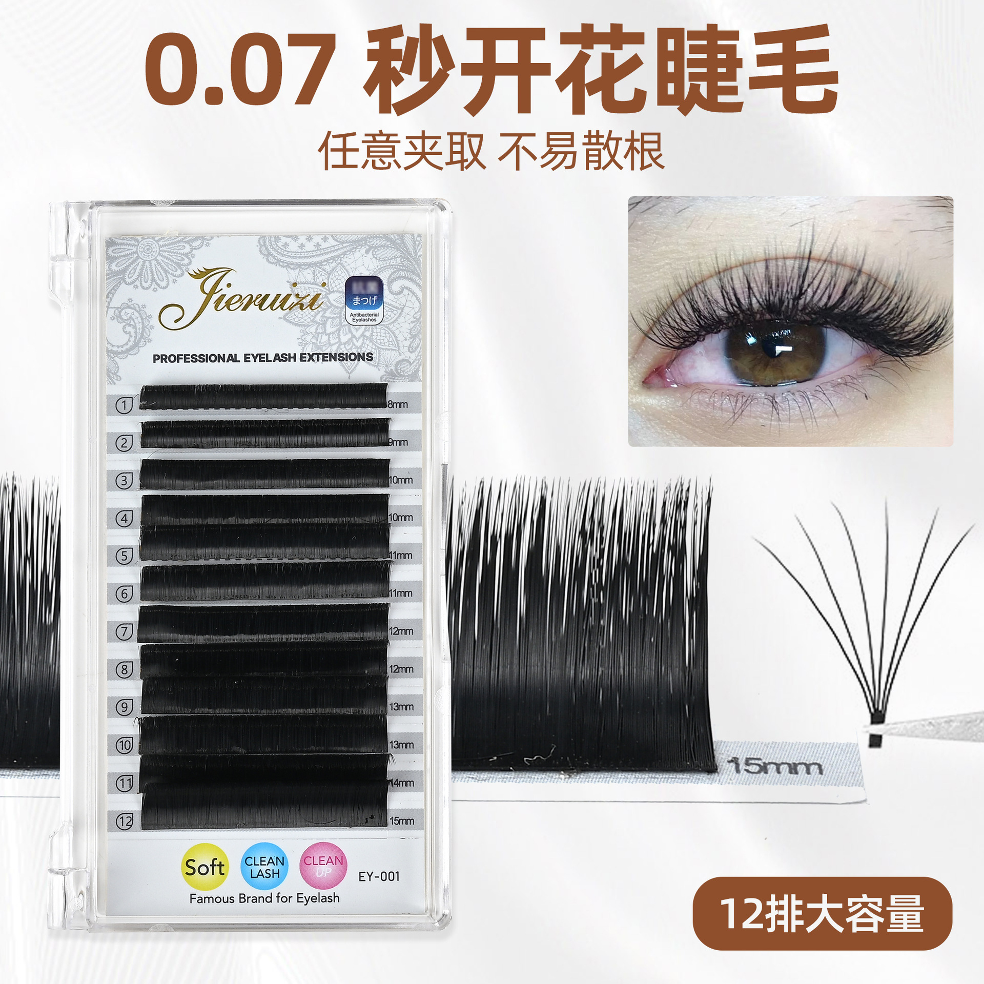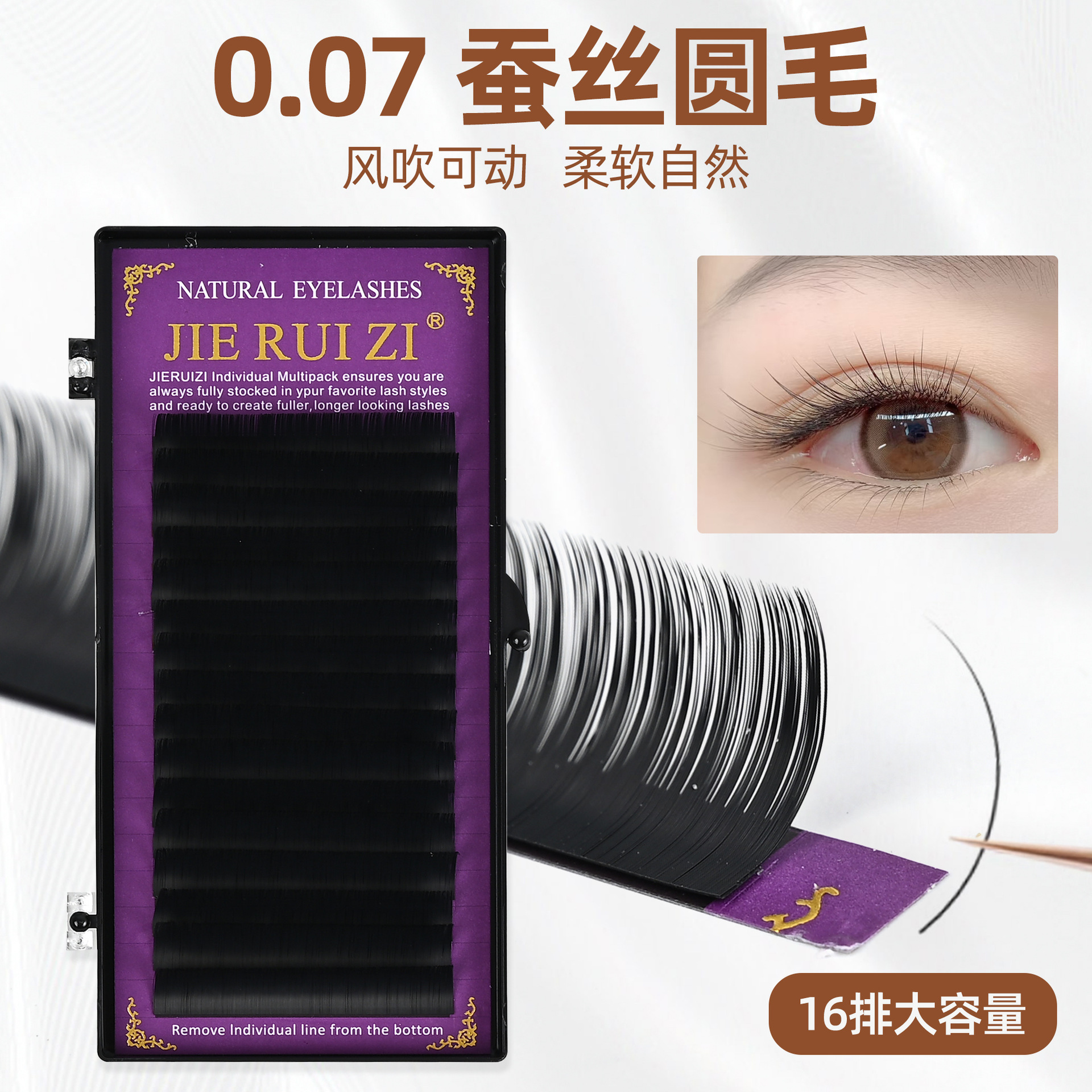 新款自然柔软圆毛16排嫁接睫毛0.07蚕丝圆毛软毛美睫批发