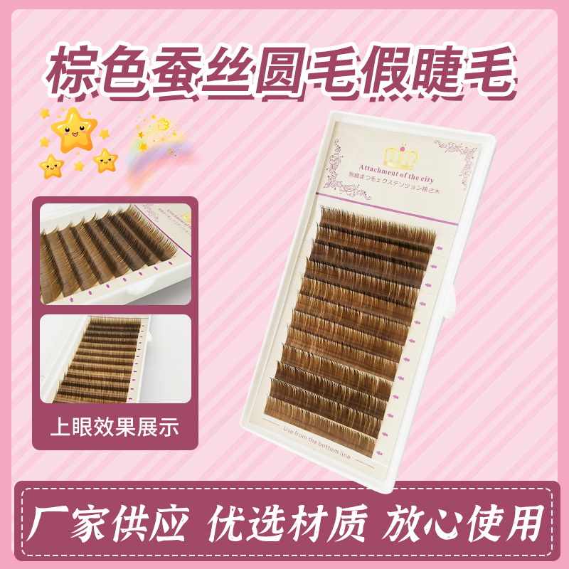跨境热推彩色化纤假睫毛蚕丝圆毛彩色密排棕色假睫毛易嫁接不散根