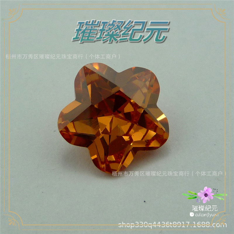 梧州5A梅花形彩色锆石裸石合成尖底五角形人造宝石戒面饰品主石