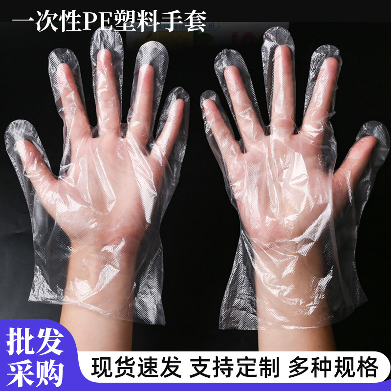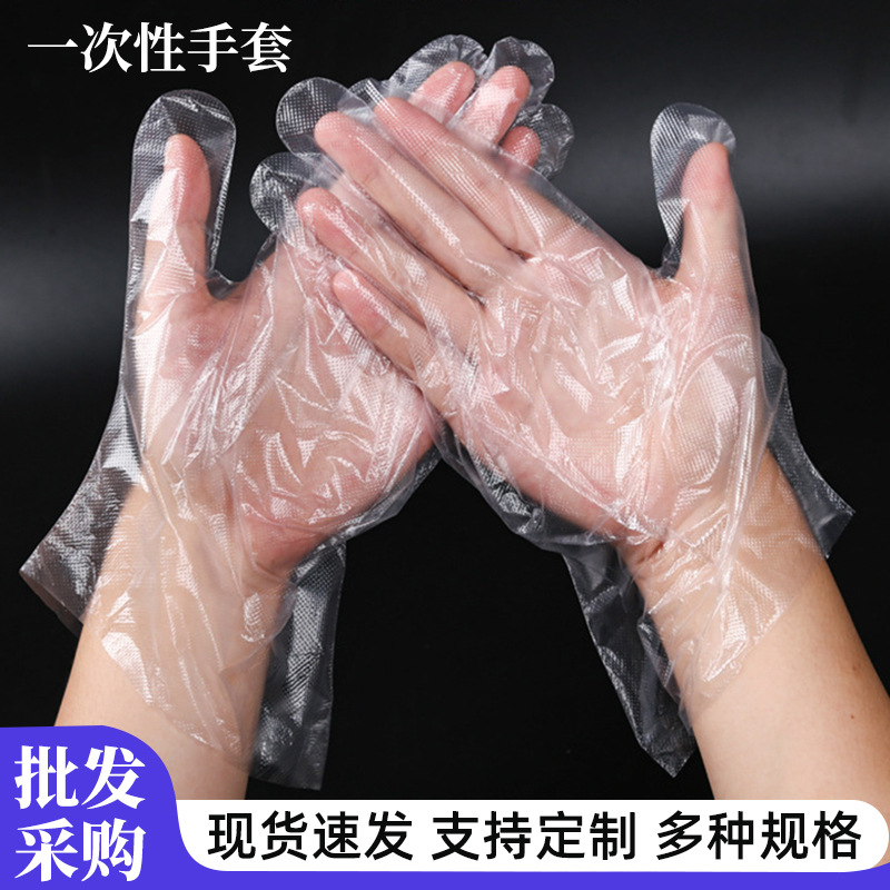 一次性手套加厚款透明薄膜手套PE烘焙餐饮薄膜加厚PE手套批发手套