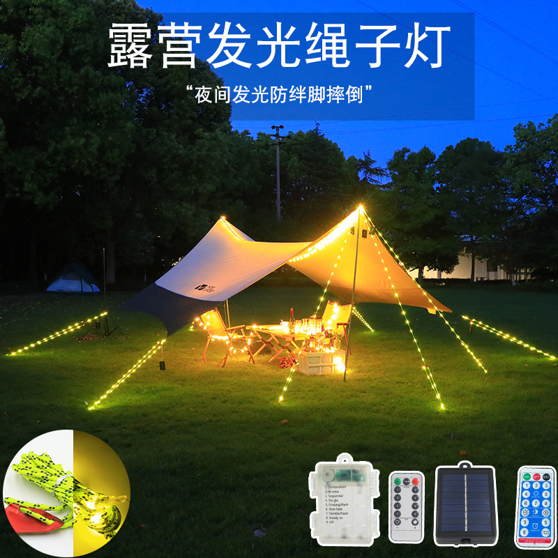 户外露营绳子灯串天幕帐篷防风发光风绳警示灯绳防绊节日氛围闪灯