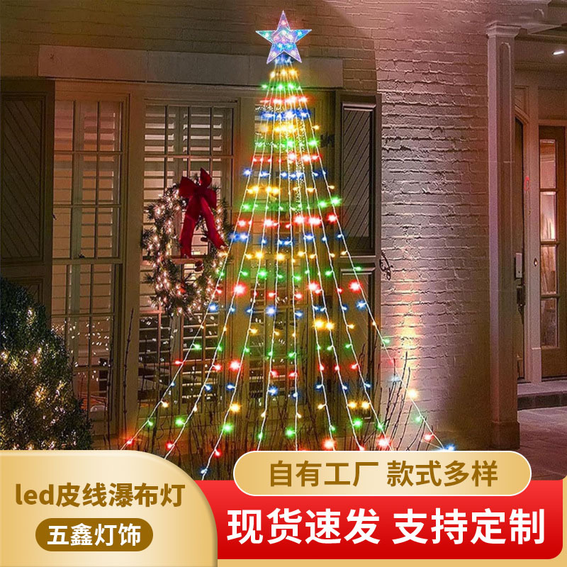 跨境新款led皮线瀑布灯户外庭院节日装饰彩灯防水电源圣诞树灯串