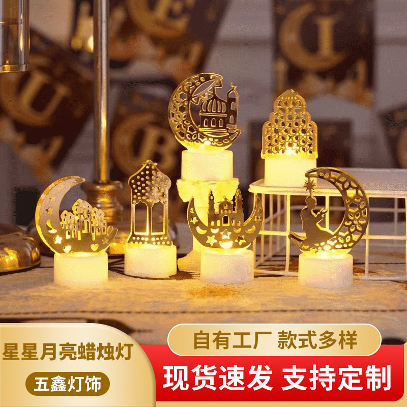 中东节日装饰铁艺插牌灯镂空雕刻星星月亮家居工艺品小摆件蜡烛灯