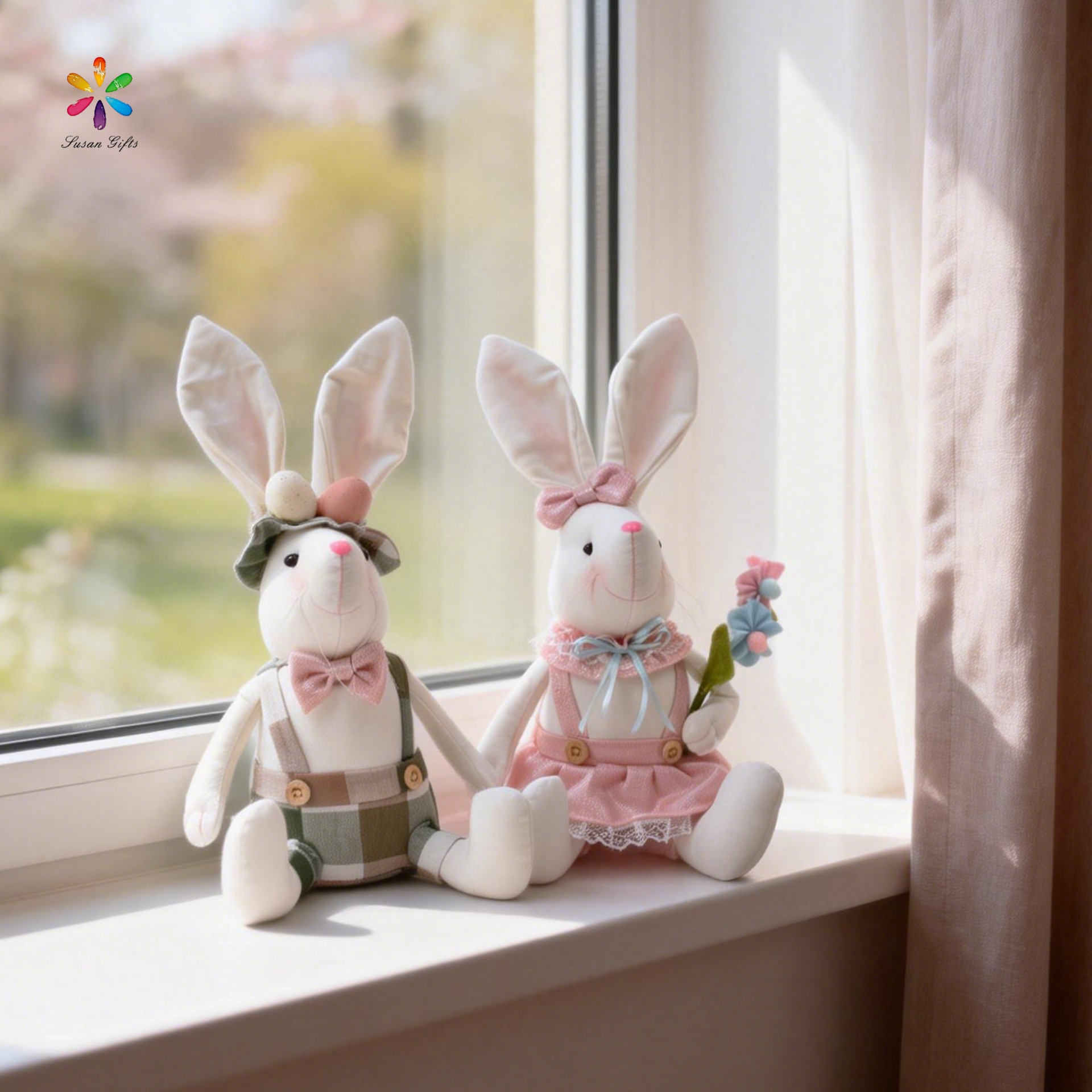 卡通可爱白色情侣粉彩蛋花朵兔子复活节家居摆件节日礼物站立