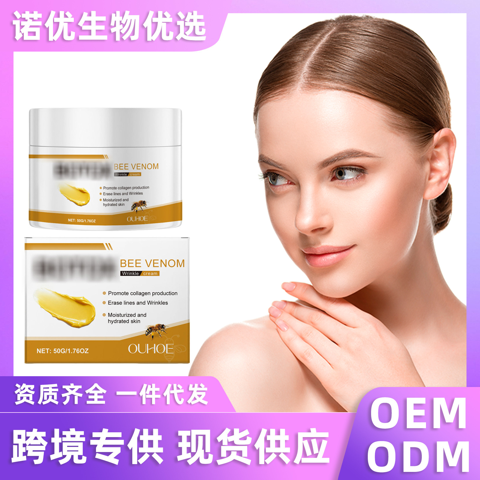 OUHOE 蜂毒面部护理霜 滋润保湿柔滑脸部肌肤弹润亮泽日常护肤霜