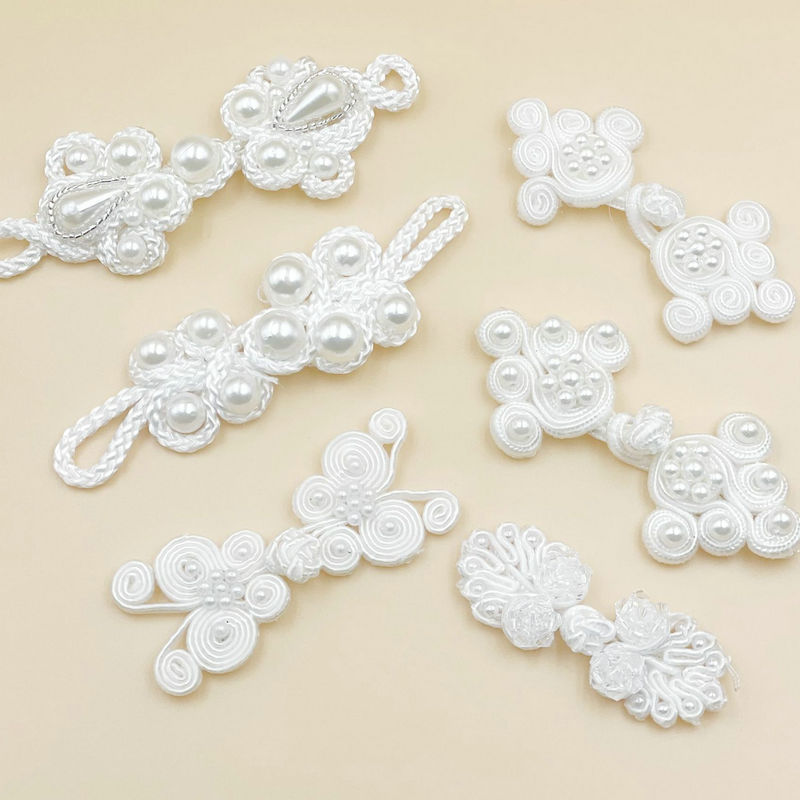 手缝珍珠玻璃锦纶盘扣旗袍装饰扣国风汉服中式纽扣DIY服装辅料配