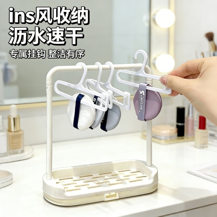 网红同款粉扑晾衣架新款娃娃衣服收纳架台面收纳架免打孔 落地式