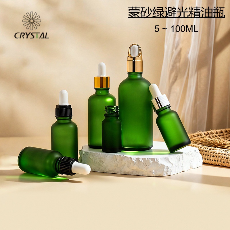 现货蒙砂绿避光精油瓶胶头滴管式化妆品分装瓶便携式精华液小样瓶