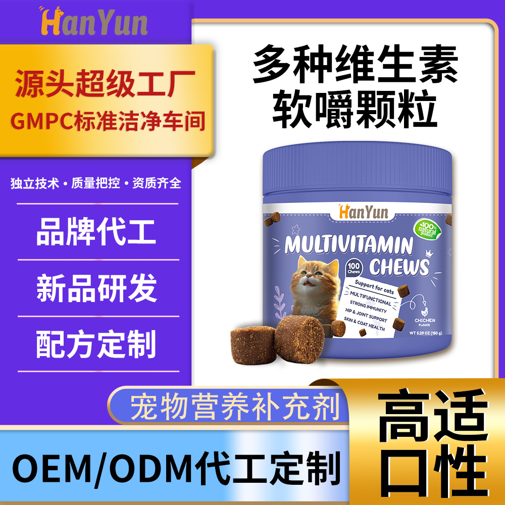 贴牌代工猫咪多种维生素软嚼颗粒改善毛发健康卵磷脂营养补充剂
