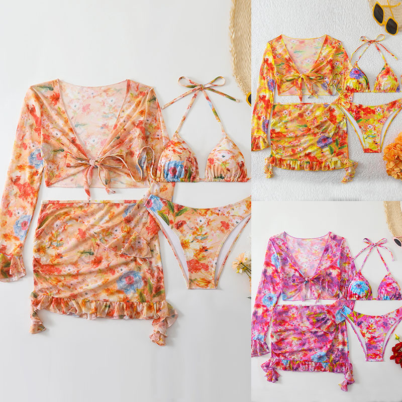 2026欧美跨境年新款V领蕾丝边花卉长袖连衣裙 性感收腰包臀短裙