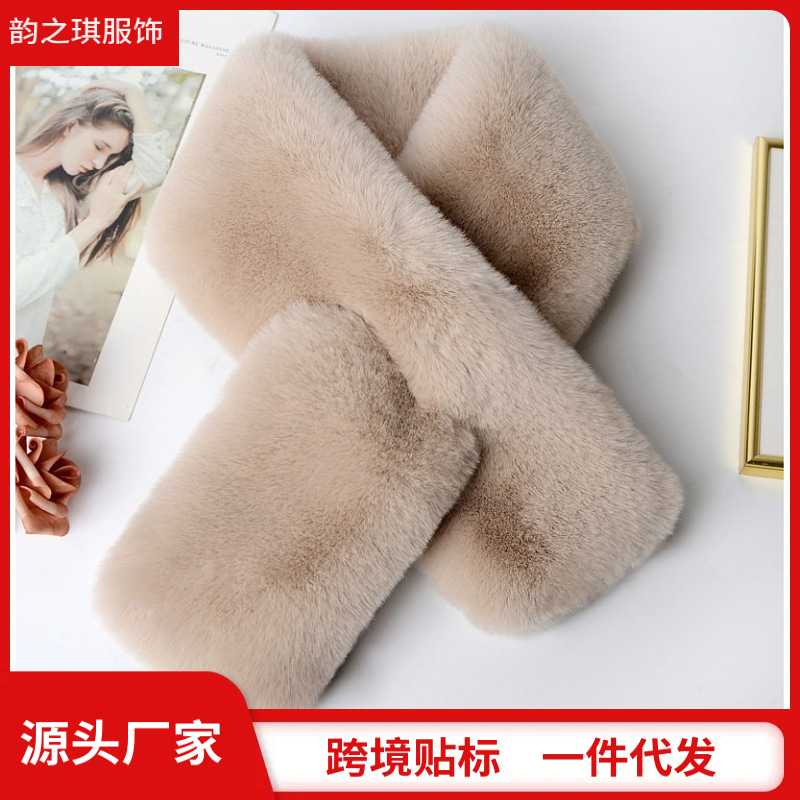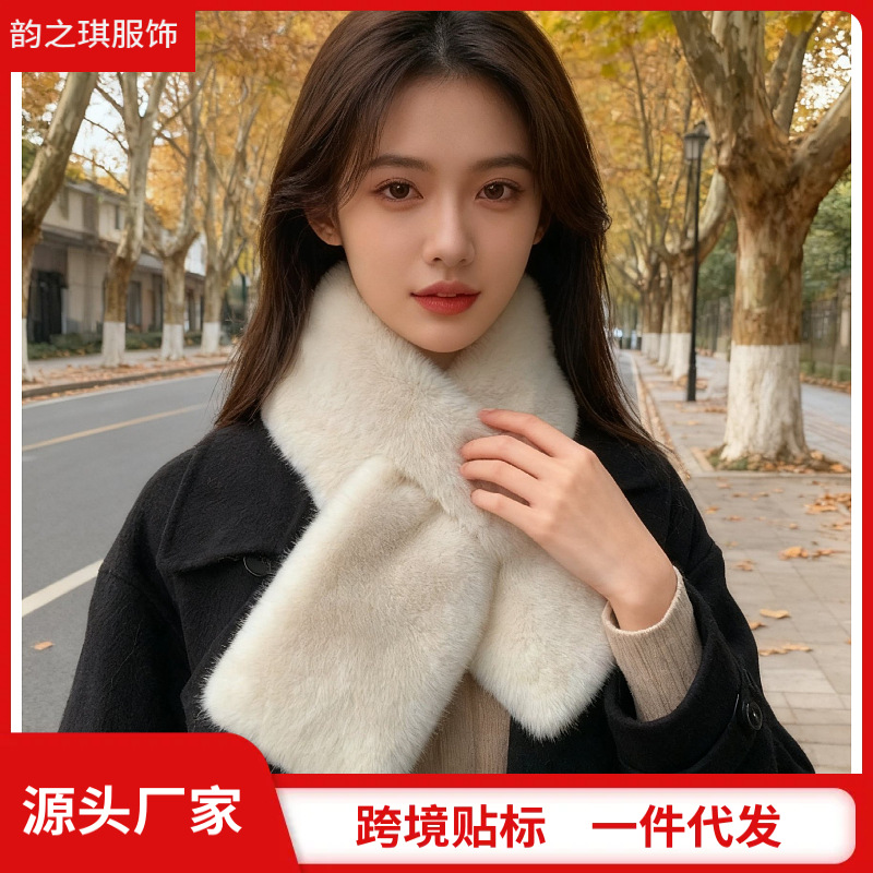 跨境双面毛绒围巾女冬季百搭保暖韩版仿皮草交叉护颈仿懒毛围脖