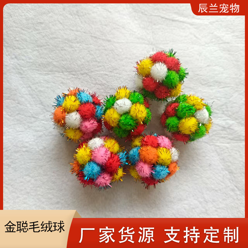手工宠物玩具生产批发逗猫猫咪金葱毛绒毛球猫猫玩具彩色金丝毛球