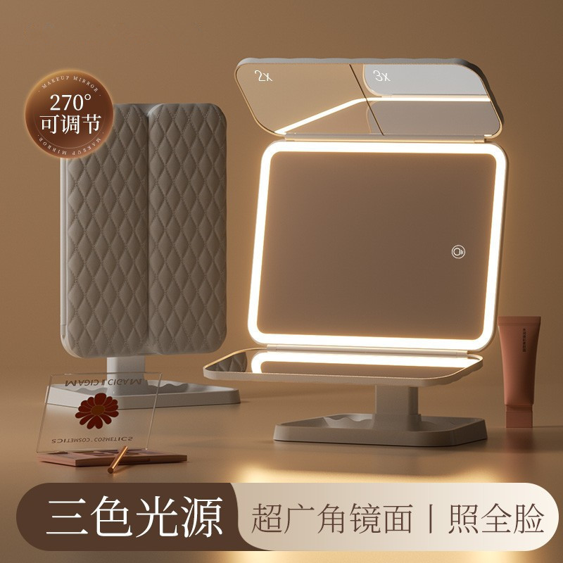 带灯led化妆镜 镜子桌面家用学生宿舍台式可立折叠放大梳妆美妆镜