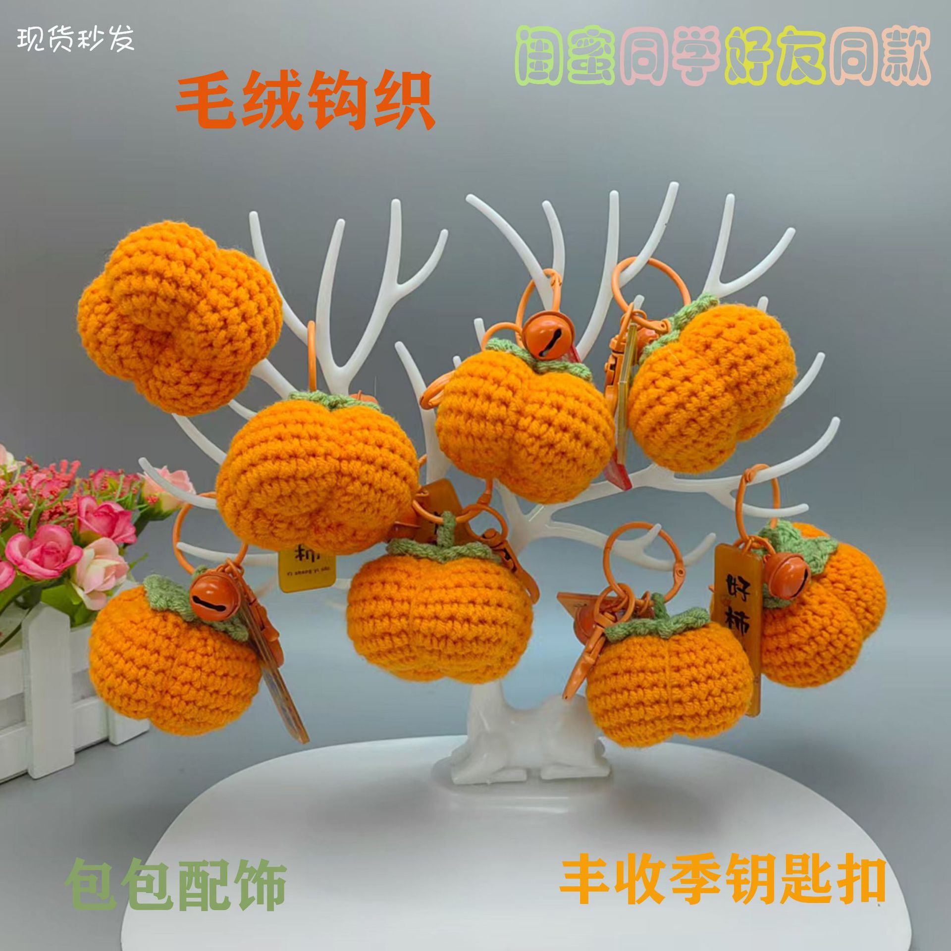 毛线针织圆柿子秋天丰收季钥匙扣柿柿如意心想柿成包挂件好柿发生