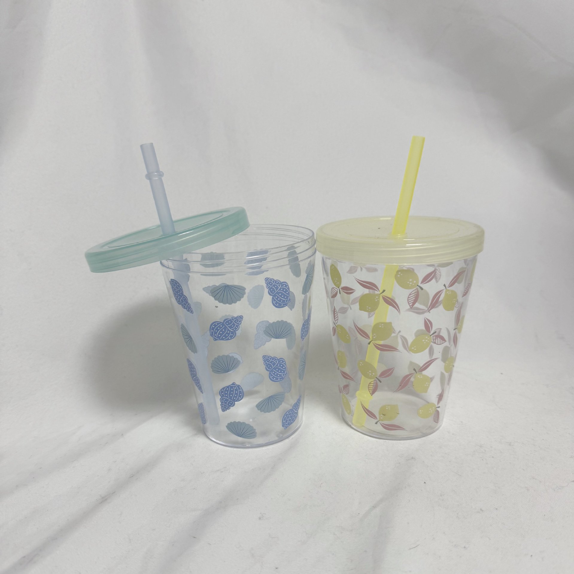 跨境批发便携ps水杯耐高温杯子食品级带盖吸管单层印 logo塑料杯