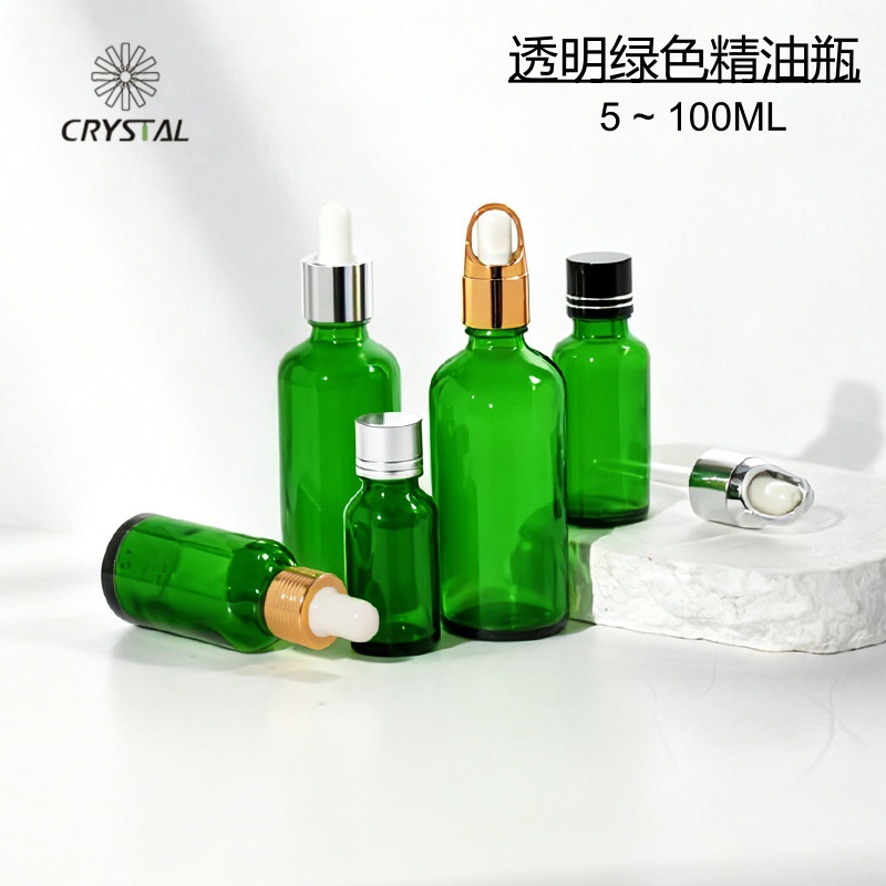 绿色玻璃精油瓶多规格胶头滴管式精华液分装瓶便携式化妆品小样瓶