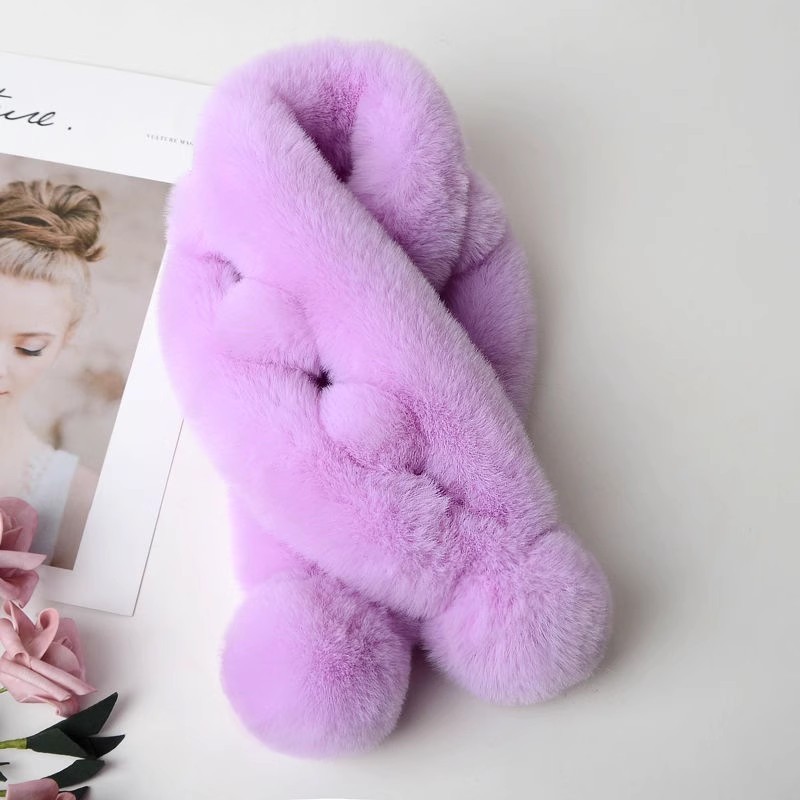 定制新中式毛球毛绒围巾仿獭兔毛两管交叉围脖冬季百搭气质保暖女