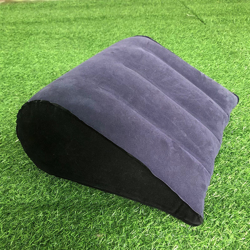 现货PVC植绒充气三角形靠垫PVC沙滩垫三角枕头充气式