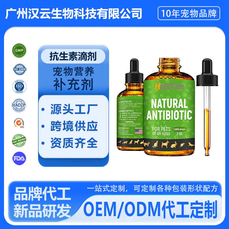 跨境宠物天然抗生素滴剂缓解猫狗身体不适营养补充保健品加工厂家
