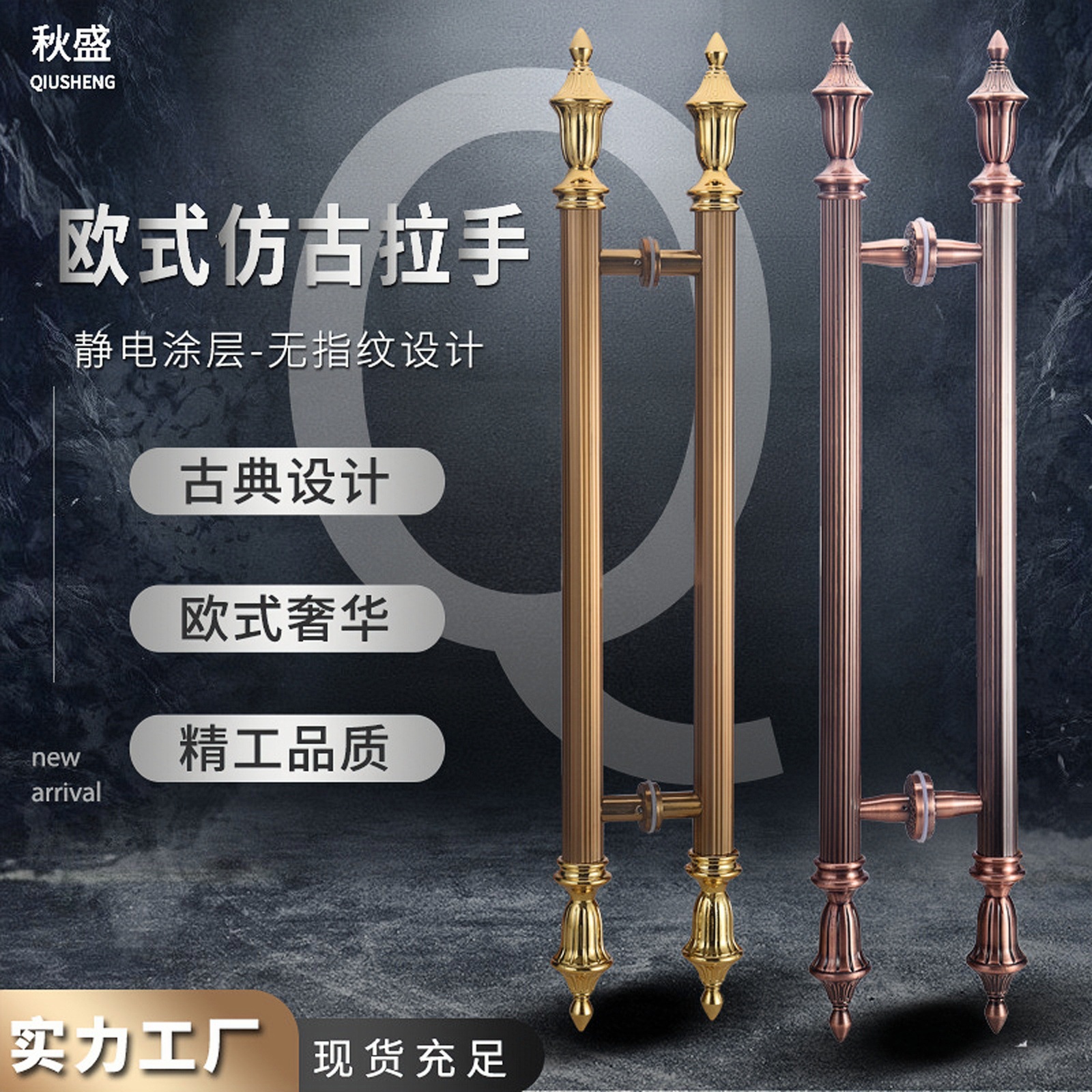 欧式仿古玫瑰金大拉手酒店KTV大门木门把手古铜玻璃门不锈钢