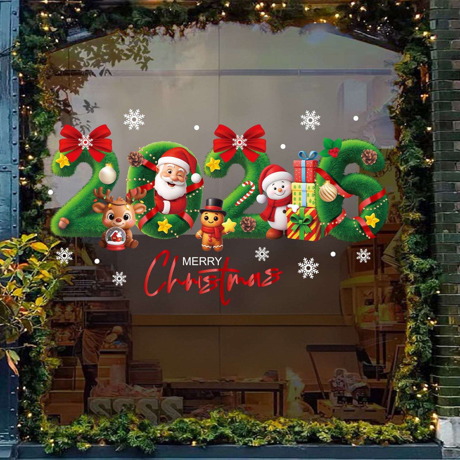 跨境新年装饰品圣诞节创意2026静电贴圣诞派对用品雪人礼物盒窗贴