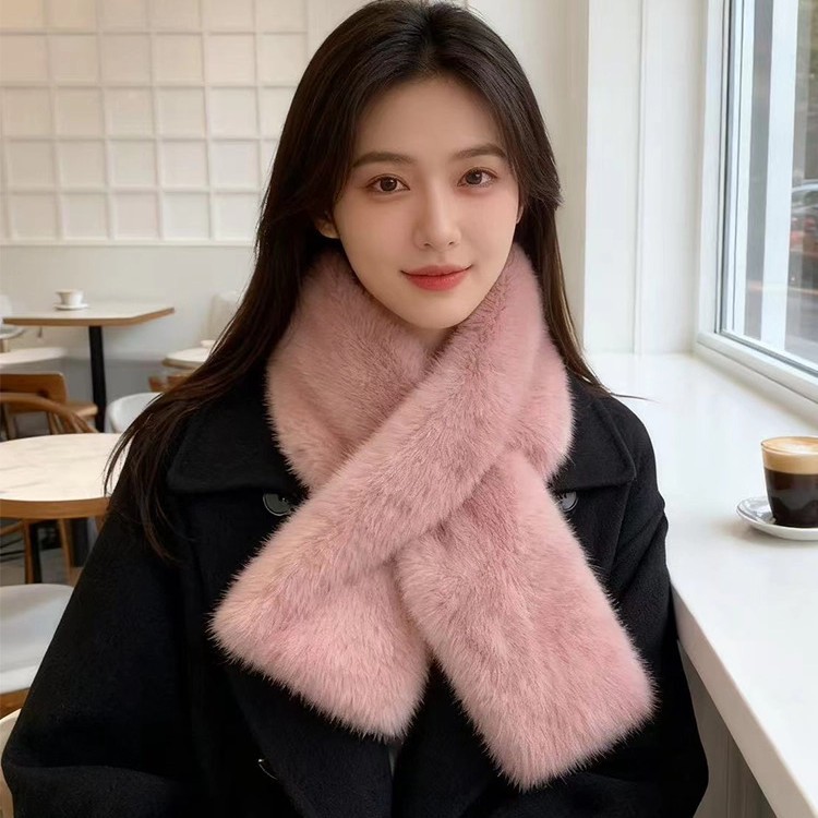 定制双面毛绒围巾女冬季百搭保暖韩版仿皮草交叉护颈仿懒兔毛围脖