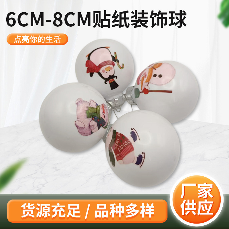 圣诞工艺品摆设球6-8cm雪人贴纸装饰球吊球可DIY店铺节日装饰用品