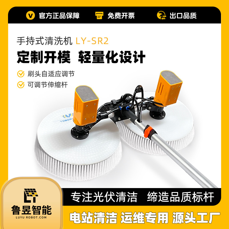 鲁昱跨境分布式电站工商业屋顶用便携式手持双头光伏板清洗设备