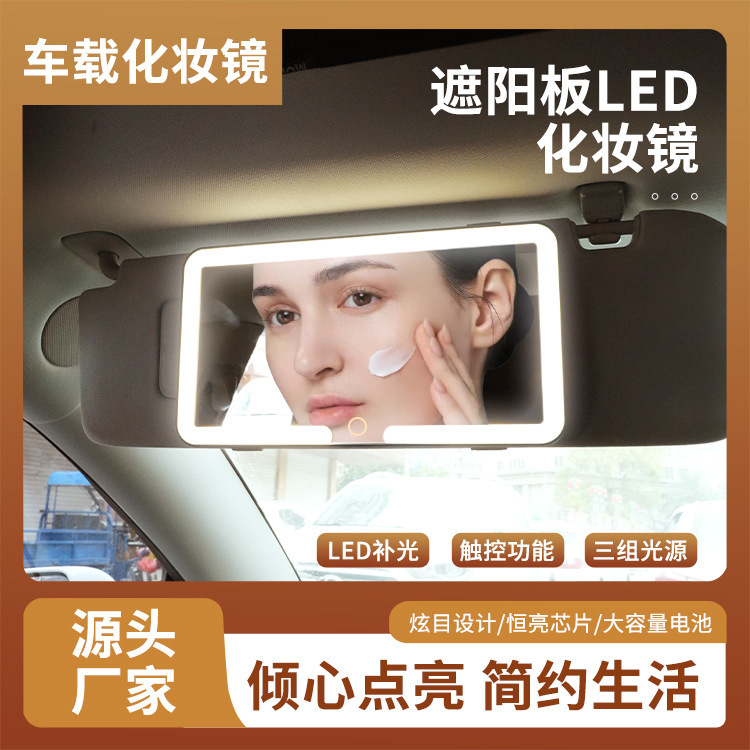 跨境车载化妆镜遮阳板高清镜子化妆镜带灯汽车美妆镜子led化妆镜