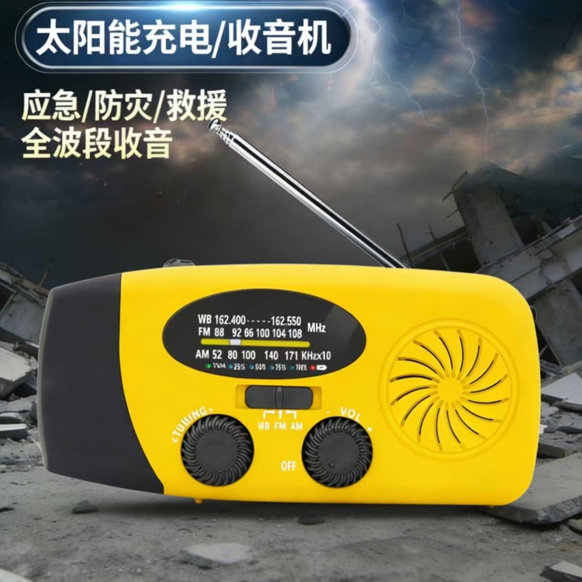 全波段太阳能应急收音机手摇充电防灾救灾救援多功能