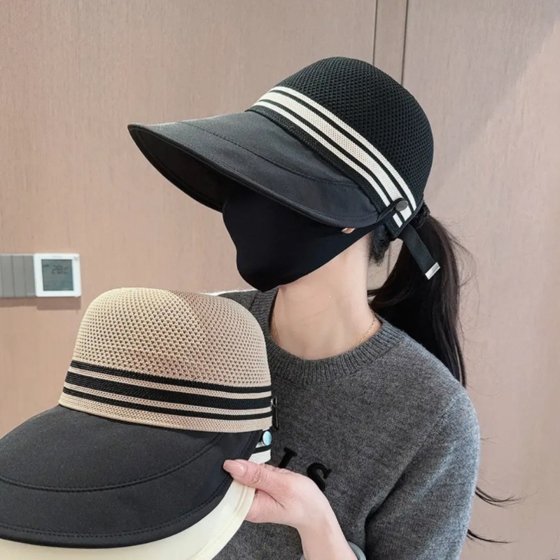 新款网红镂空透气遮阳帽子女可挂口罩速干薄款空顶防晒鸭舌渔夫帽