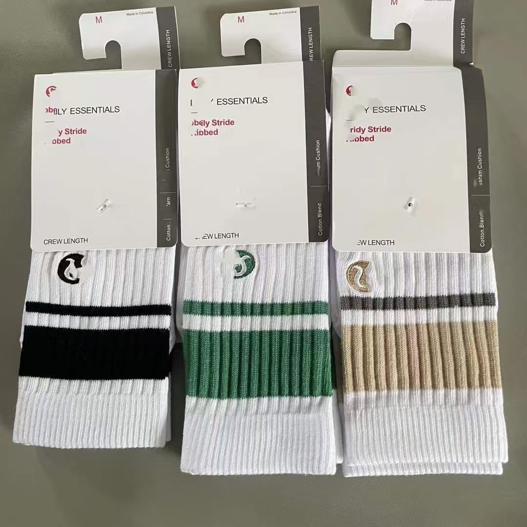 四季款长筒黑白刺绣勾勾运动袜跑步健身休闲时尚吸汗透气中筒棉袜