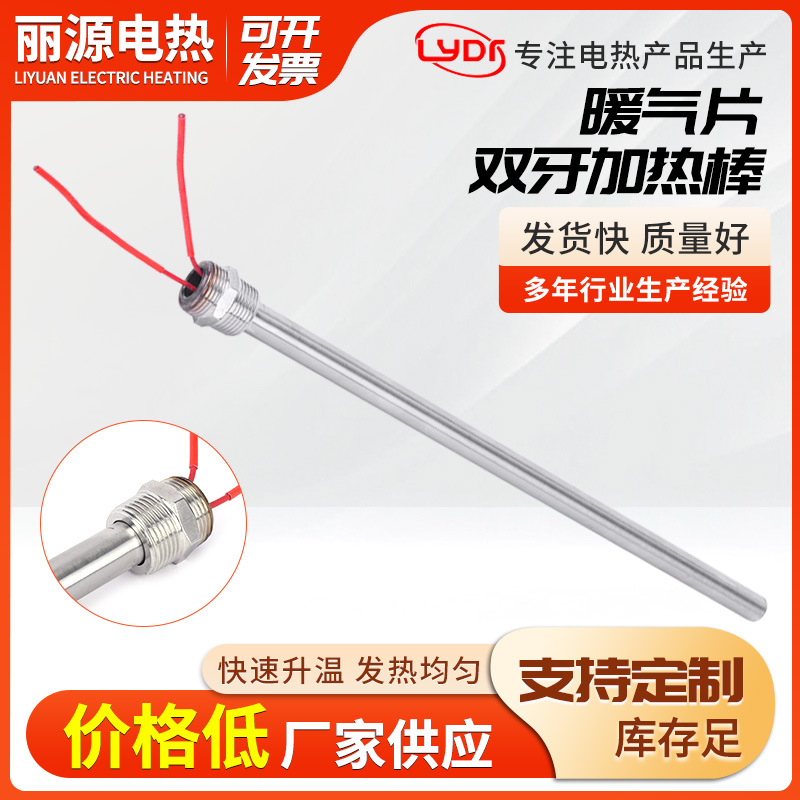 暖气片双牙加热棒 不锈钢6分上下双牙螺纹电热管可装温控加热棒